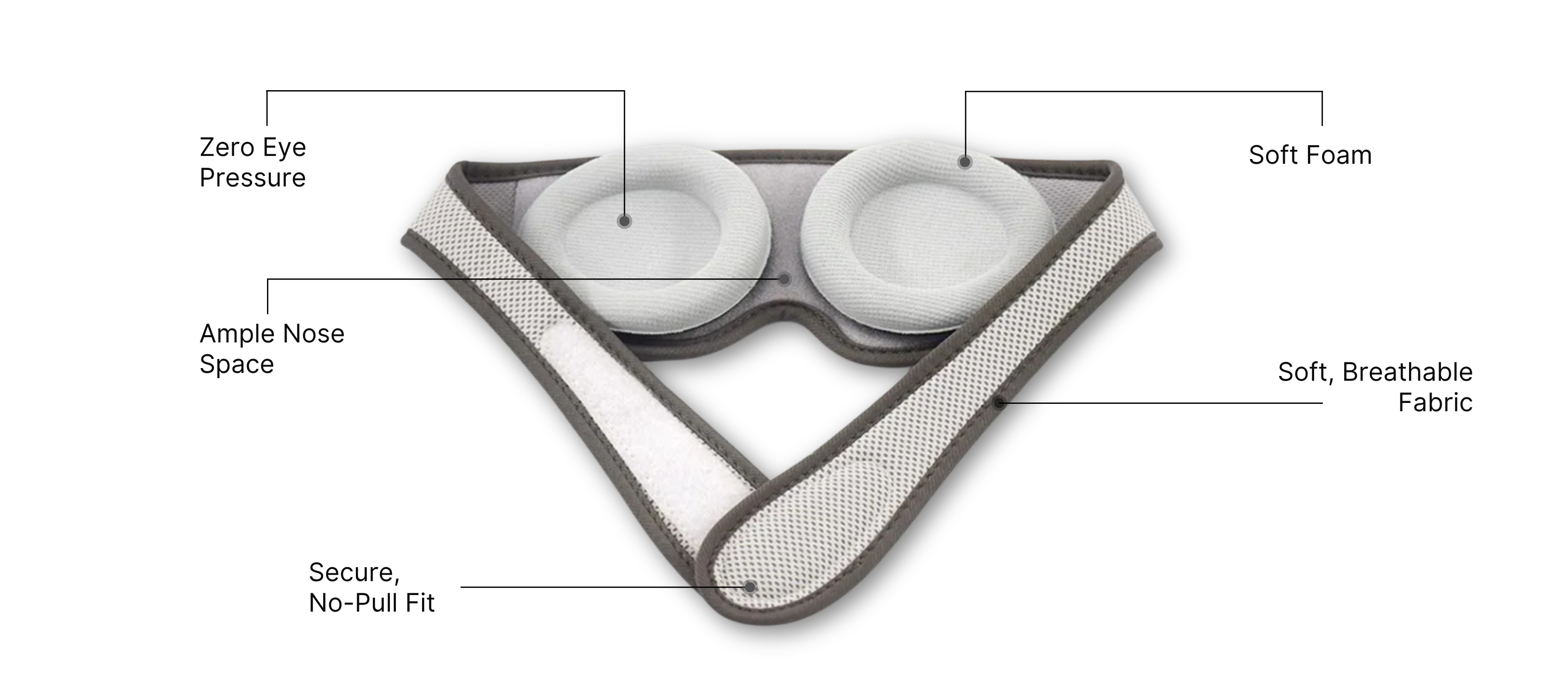 This mask blocks out the light without pressing on your eyes room, no squeezing, no discomfort, and calm in any environment.